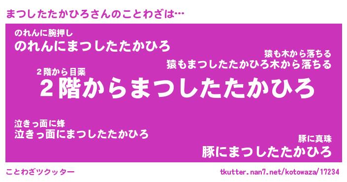| 胡散臭い通販商品みたいなあだ名 | 『必ず成功する霊験あらたかなお札…その名も「まつしたたかひろ」』 |