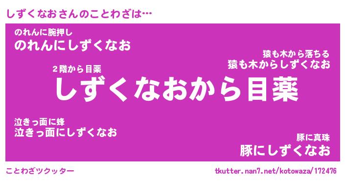 | 胡散臭い通販商品みたいなあだ名 | 『億万長者になれるブレスレット…その名も「しずくなお」』 |