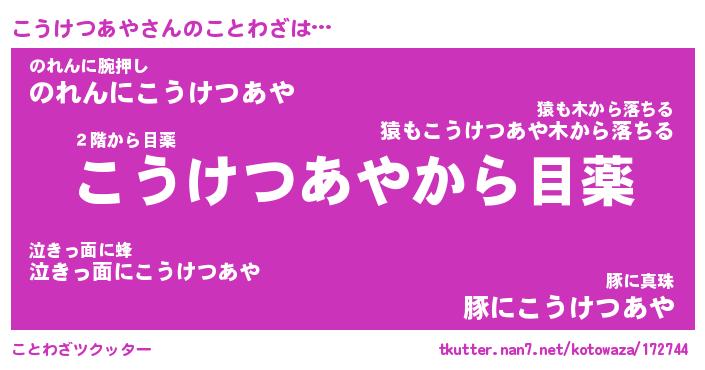 | 胡散臭い通販商品みたいなあだ名 | 『億万長者になれる霊験あらたかなお札…その名も「こうけつあや」』 |