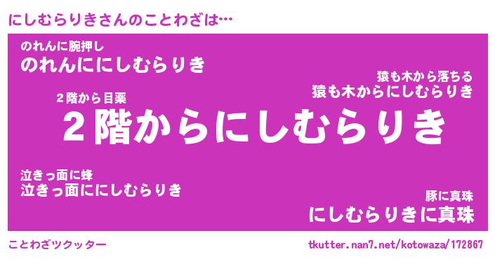 | ポケモン風あだ名 | 『ニシチュウ』『ニシムダネ』 |