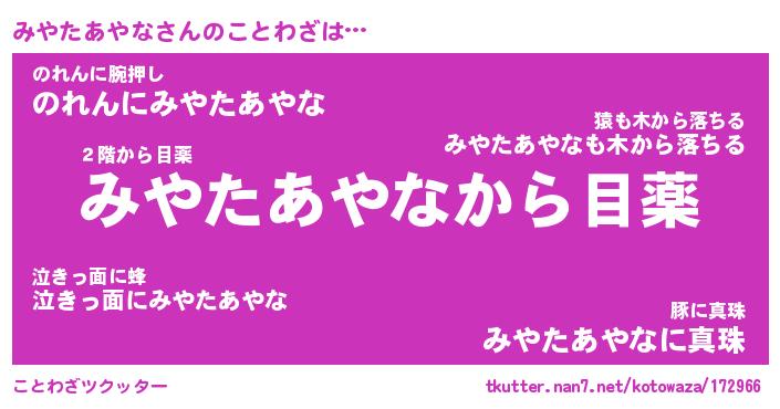 | 胡散臭い通販商品みたいなあだ名 | 『億万長者になれるブレスレット…その名も「みやたあやな」』 |