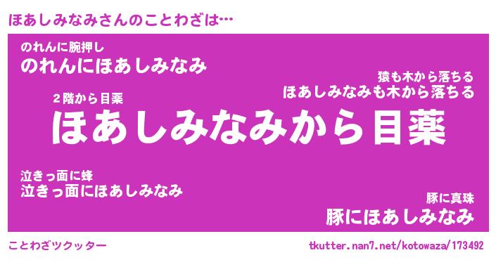 | 胡散臭い通販商品みたいなあだ名 | 『億万長者になれるブレスレット…その名も「ほあしみなみ」』 |