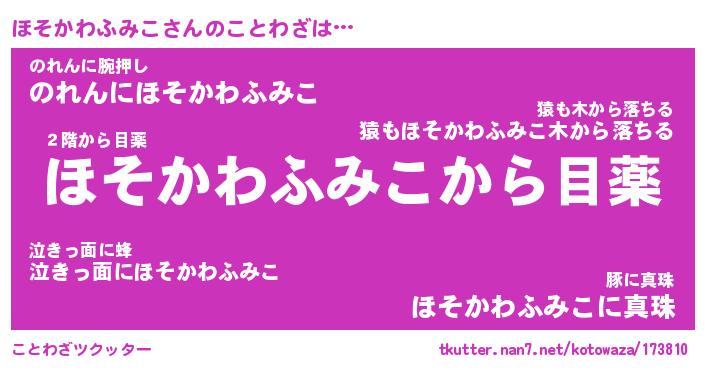 | 恥ずかしいあだ名 | 『プリティーほそかわふみこ』『ほそちん』 |