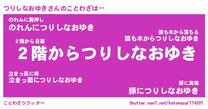 | ヘコむあだ名 | 『つりにー』『つくし』『つりぷりん』 |