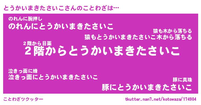 | 胡散臭い通販商品みたいなあだ名 | 『必ず成功する水晶球…その名も「とうかいまきたさいこ」』 |