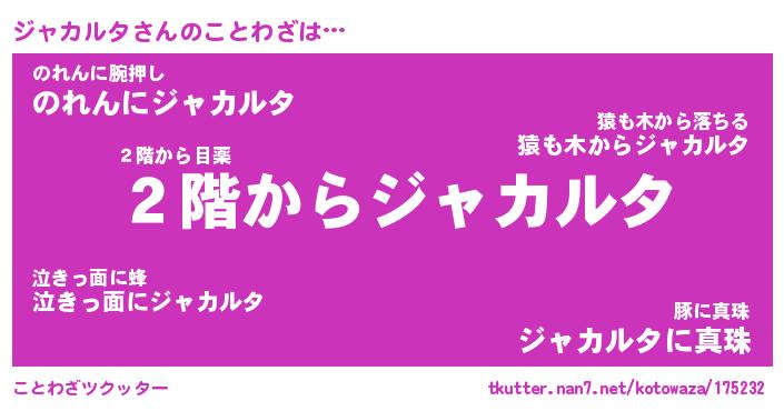 | 胡散臭い通販商品みたいなあだ名 | 『必ず成功する水晶球…その名も「ジャカルタ」』 |