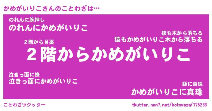| 2回繰り返すあだ名 | 『かめかめ』『かかめめ』『ぬめぬめ』 |