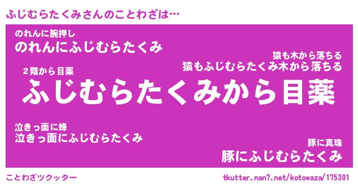 | ツイッター | ふじむらたくみさんのツイッターID『namakemono_idle』 |