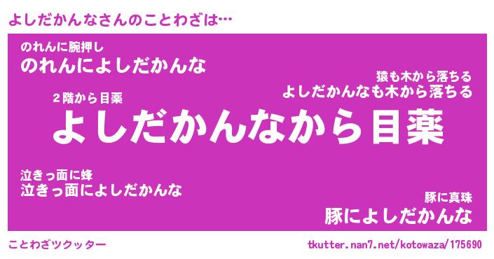 | 胡散臭い通販商品みたいなあだ名 | 『億万長者になれるブレスレット…その名も「よしだかんな」』 |