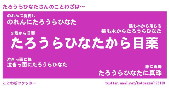| ヘコむあだ名 | 『たろふぇ~』『レバニラ』『たろお』 |
