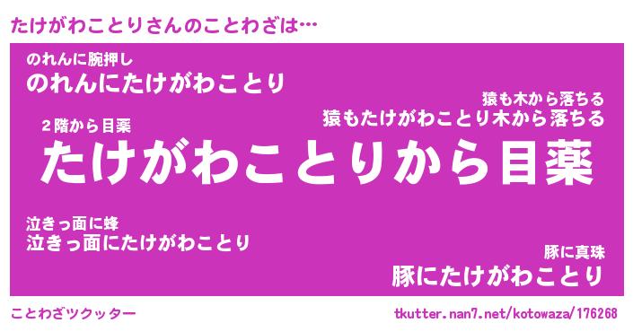 | 胡散臭い通販商品みたいなあだ名 | 『億万長者になれるブレスレット…その名も「たけがわことり」』 |