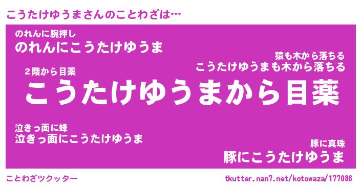 | 胡散臭い通販商品みたいなあだ名 | 『モテモテ間違いなし霊験あらたかなお札…その名も「こうたけゆうま」』 |