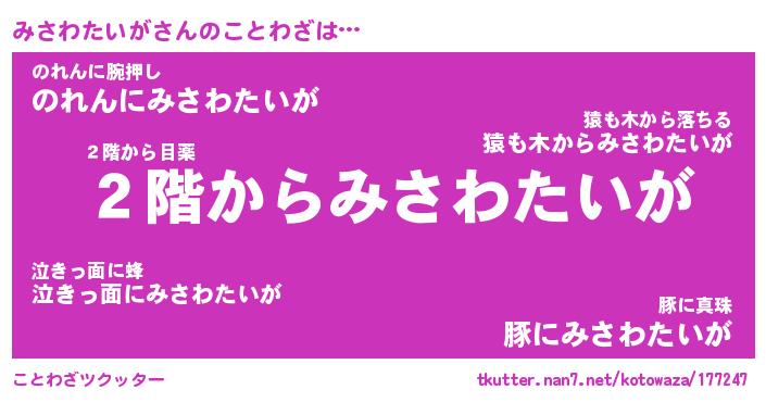 | 胡散臭い通販商品みたいなあだ名 | 『必ず成功する霊験あらたかなお札…その名も「みさわたいが」』 |