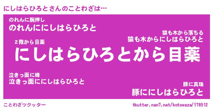 | 胡散臭い通販商品みたいなあだ名 | 『モテモテ間違いなし霊験あらたかなお札…その名も「にしはらひろと」』 |