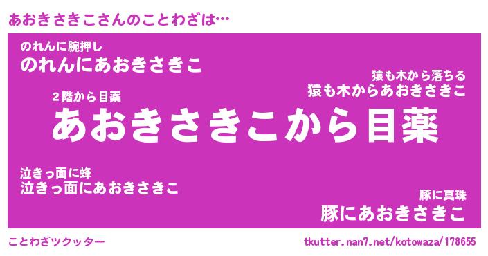 | 胡散臭い通販商品みたいなあだ名 | 『億万長者になれるブレスレット…その名も「あおきさきこ」』 |