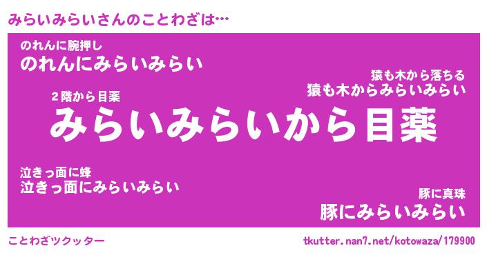 | 胡散臭い通販商品みたいなあだ名 | 『億万長者になれる霊験あらたかなお札…その名も「みらいみらい」』 |