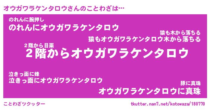 | 男性向けラノベタイトル風あだ名 | 『オウガワラケンタロウの憂鬱』 |