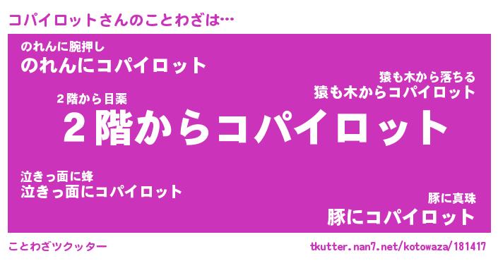 | 胡散臭い通販商品みたいなあだ名 | 『必ず成功する霊験あらたかなお札…その名も「コパイロット」』 |