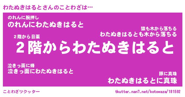| 2回繰り返すあだ名 | 『わたわた』『わわたた』『ぬらぬら』 |