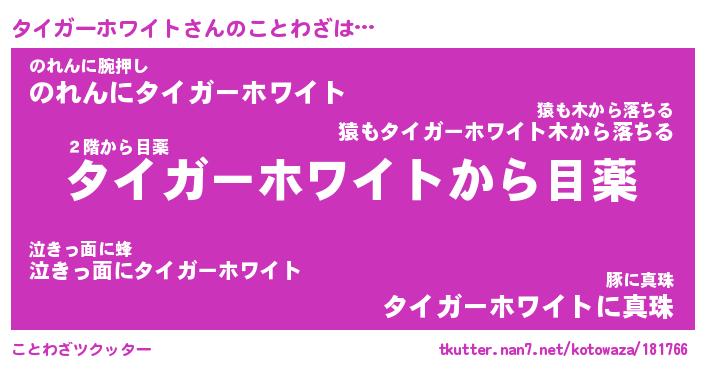| 胡散臭い通販商品みたいなあだ名 | 『億万長者になれるブレスレット…その名も「タイガーホワイト」』 |