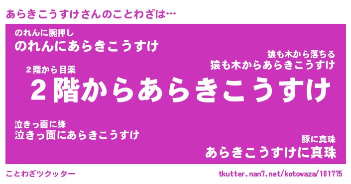 | 男性向けラノベタイトル風あだ名 | 『あらきこうすけの憂鬱』 |