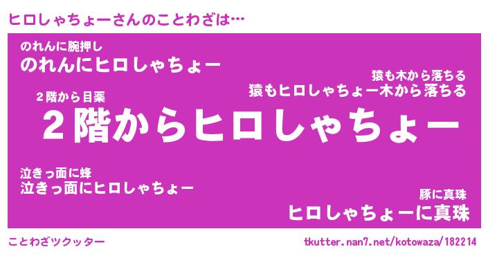 | ヘコむあだ名 | 『ヒロもー』『酢こんぶ』『ヒロ太郎』 |