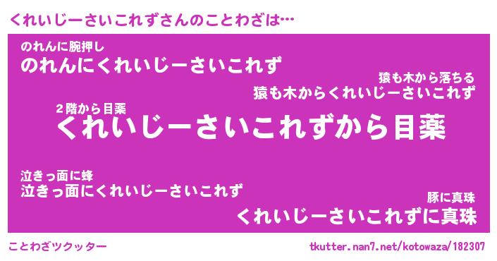 | ツイッター | くれいじーさいこれずさんのツイッターID『dendenmushi_idle』 |