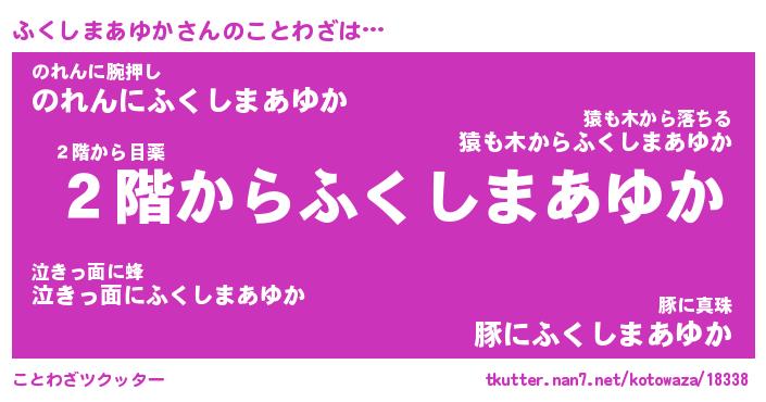 | 恥ずかしいあだ名 | 『プリティーふくしまあゆか』『ふくちん』 |