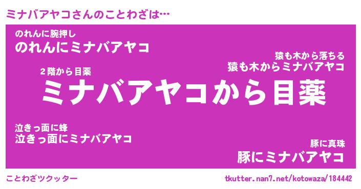 | 欧米人風あだ名 | 『マイケルミナバアヤコ』 |