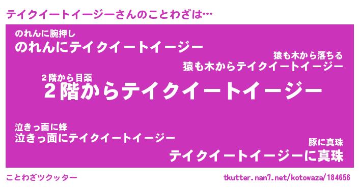 | 男性向けラノベタイトル風あだ名 | 『テイクイートイージーの憂鬱』 |