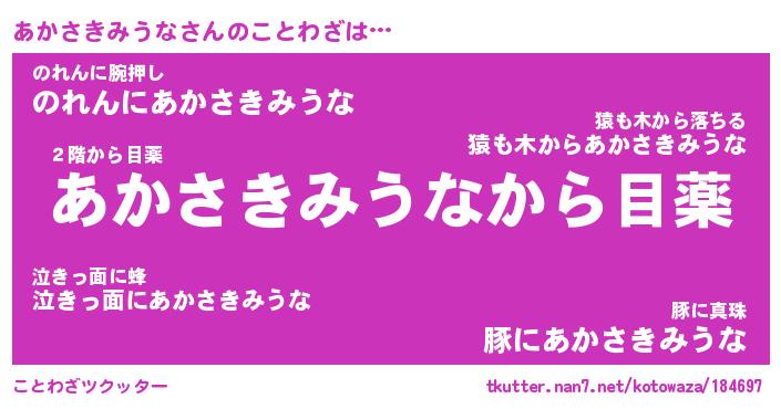 | 胡散臭い通販商品みたいなあだ名 | 『モテモテ間違いなし霊験あらたかなお札…その名も「あかさきみうな」』 |