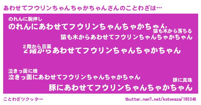 | ツイッター | あわせてフウリンちゃんちゃかちゃんさんのツイッターID『kikurage_nyan』 |