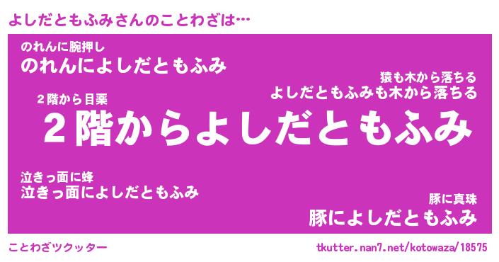 | 胡散臭い通販商品みたいなあだ名 | 『モテモテ間違いなし霊験あらたかなお札…その名も「よしだともふみ」』 |