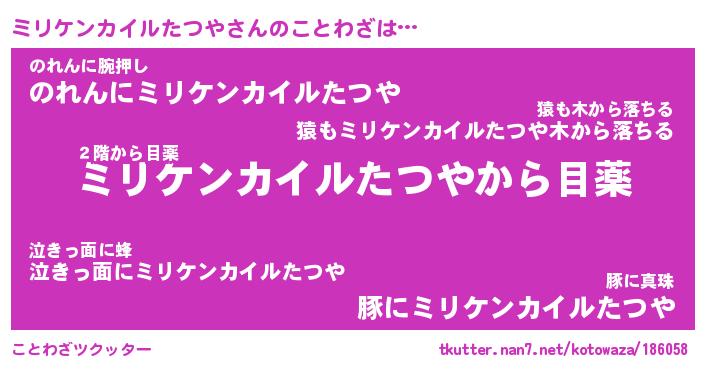 | 胡散臭い通販商品みたいなあだ名 | 『億万長者になれるブレスレット…その名も「ミリケンカイルたつや」』 |