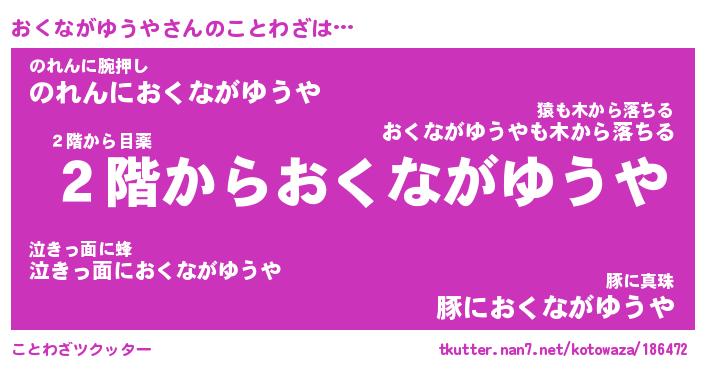 | 男性向けラノベタイトル風あだ名 | 『おくながゆうやの憂鬱』 |