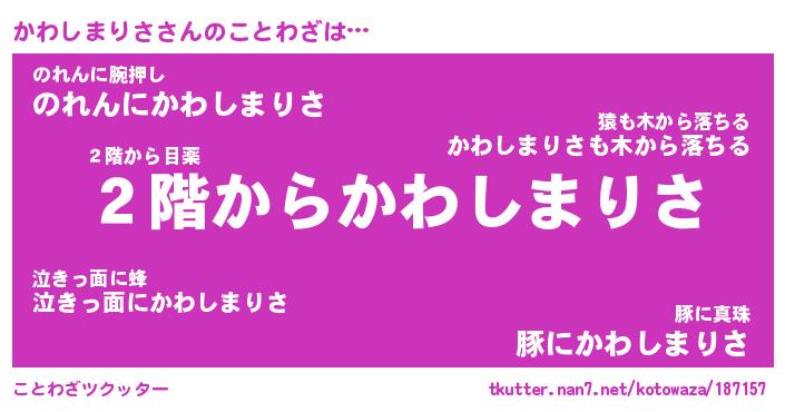| 胡散臭い通販商品みたいなあだ名 | 『必ず成功する霊験あらたかなお札…その名も「かわしまりさ」』 |
