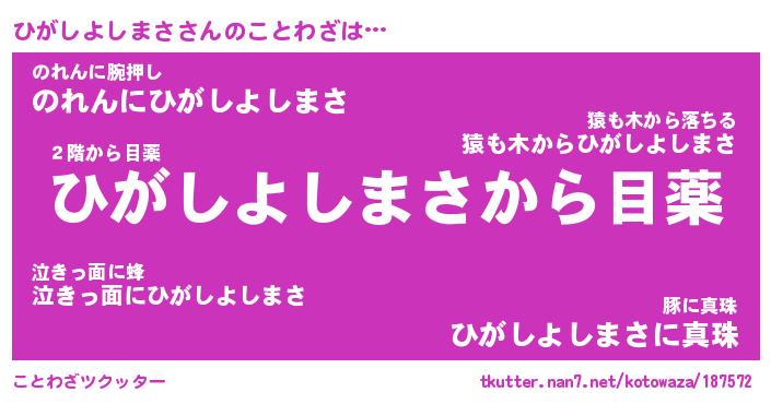 | 胡散臭い通販商品みたいなあだ名 | 『億万長者になれる霊験あらたかなお札…その名も「ひがしよしまさ」』 |