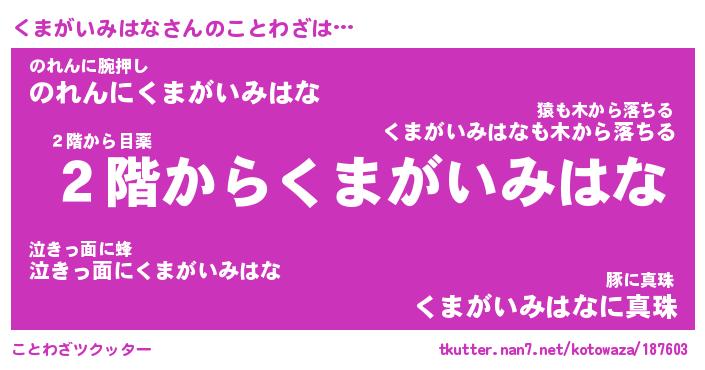 | 2回繰り返すあだ名 | 『くまくま』『くくまま』『ねばねば』 |