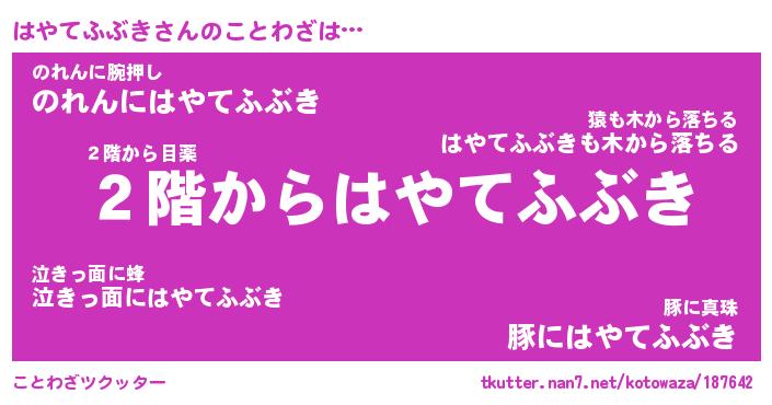| 胡散臭い通販商品みたいなあだ名 | 『必ず成功する霊験あらたかなお札…その名も「はやてふぶき」』 |
