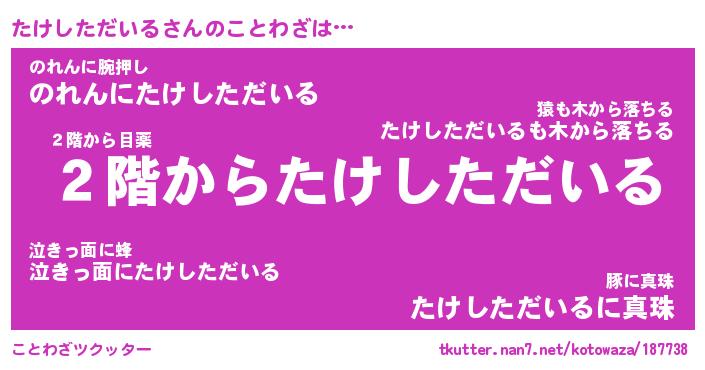 | ヘコむあだ名 | 『たけにゅー』『酢こんぶ』 |