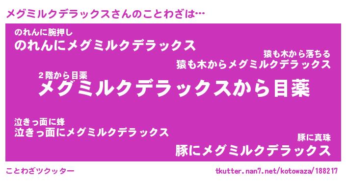 | 胡散臭い通販商品みたいなあだ名 | 『モテモテ間違いなし霊験あらたかなお札…その名も「メグミルクデラックス」』 |