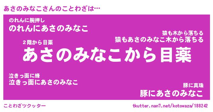 | 胡散臭い通販商品みたいなあだ名 | 『モテモテ間違いなし霊験あらたかなお札…その名も「あさのみなこ」』 |