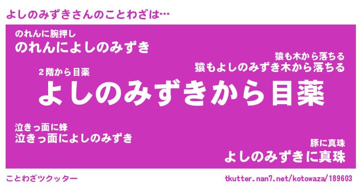 | 胡散臭い通販商品みたいなあだ名 | 『億万長者になれる水晶球…その名も「よしのみずき」』 |