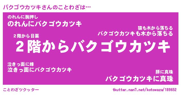 | 男性向けラノベタイトル風あだ名 | 『バクゴウカツキの憂鬱』 |