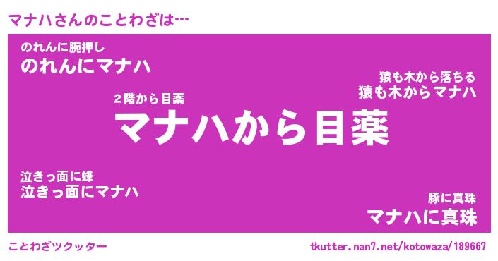 | 意味不明あだ名 | 『ペロリンマナハ』『マナハフォーエバー』 |