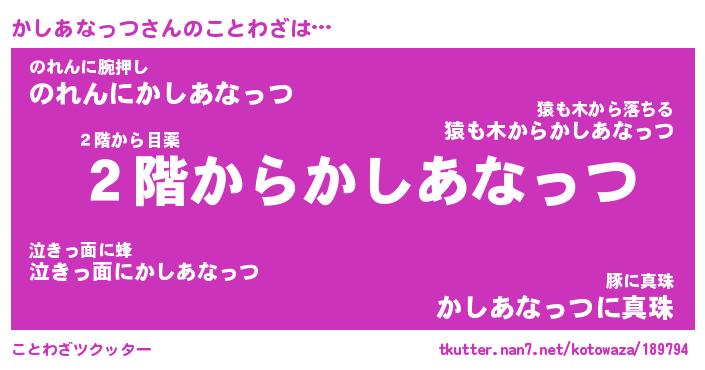 | 胡散臭い通販商品みたいなあだ名 | 『必ず成功する霊験あらたかなお札…その名も「かしあなっつ」』 |