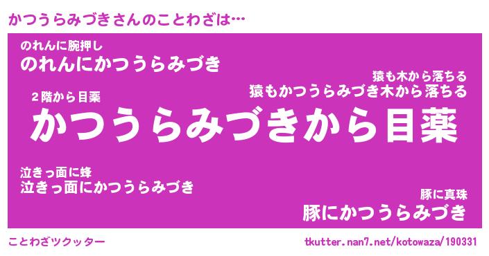| 2回繰り返すあだ名 | 『かつかつ』『かかつつ』『うろうろ』 |
