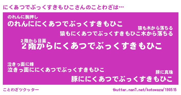 | 欧米人風あだ名 | 『マイケルにくあつでぶっくすきもひこ』 |