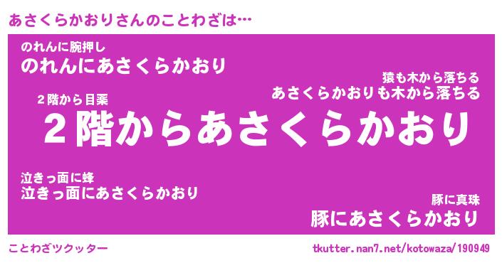 | 男性向けラノベタイトル風あだ名 | 『あさくらかおりの憂鬱』 |