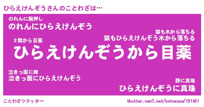 | 胡散臭い通販商品みたいなあだ名 | 『モテモテ間違いなし霊験あらたかなお札…その名も「ひらえけんぞう」』 |